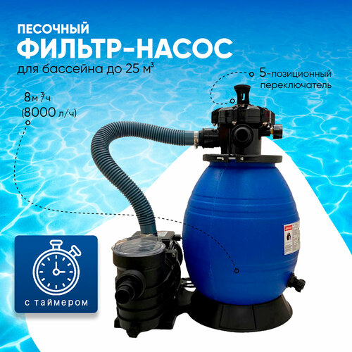 Песочный фильтр-насос (песчаный) с таймером Vommy VM-8 - 8 куб. м/час для бассейна объемом до 25 куб. м - каркасных, надувных, сборных бассейнов