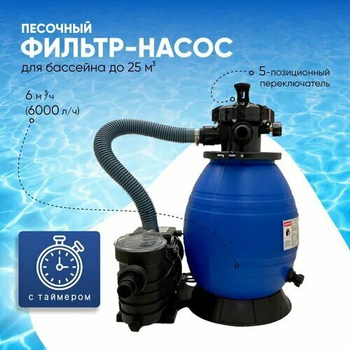 Песочный фильтр-насос (песчаный) с таймером Vommy VM-5t - 6 куб. м/час для бассейна объемом до 25 куб. м - каркасных, надувных, сборных бассейнов