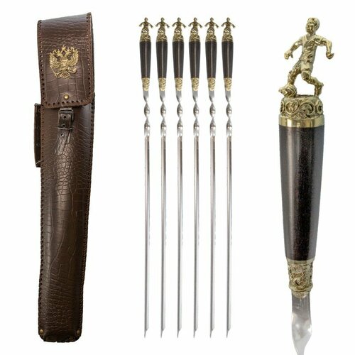 Подарки Набор шампуров "Футболист" с латунными навершиями в кожаном колчане (6 штук)