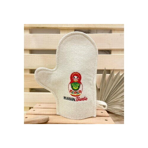 Варежка для бани и сауны из войлока белого с вышивкой "Главный банщик "