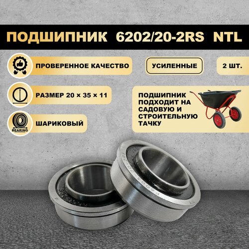 Подшипник (20x35x11) 6202/20-2RS для колеса садовой тачки 2 ШТ.