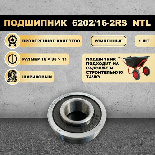 Подшипник (16x35x11) 6202/16-2RS для колеса садовой тачки 1 ШТ.