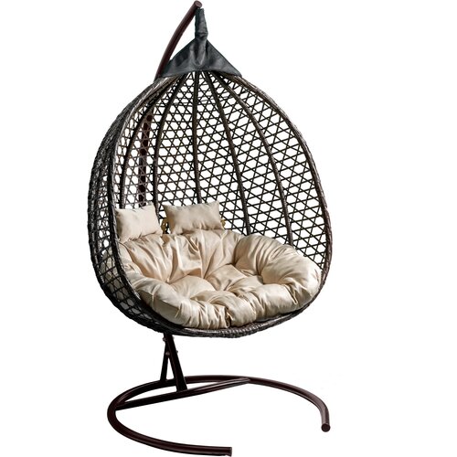 Кресло подвесное двойное Мебельторг Фиджи Основание коричневый/Корзина коричневая/Подушка бежевая