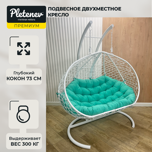 Подвесное кресло Pletenev Двухместное белое кресло с Мятной подушкой