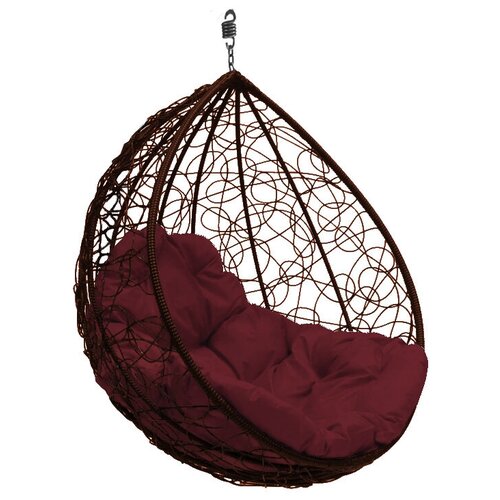 Подвесное кресло капля ротанг коричневое (без стойки), бордовая подушка
