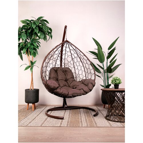 Подвесное кресло M-Group XL ротанг коричневое, коричневая подушка