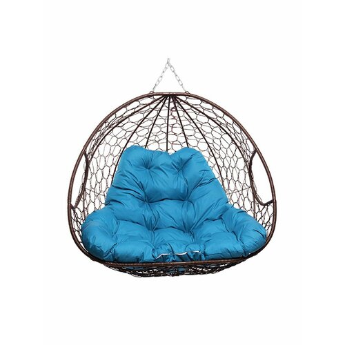 Подвесное кресло для двоих (без стойки), с ротангом коричневое, голубая подушка