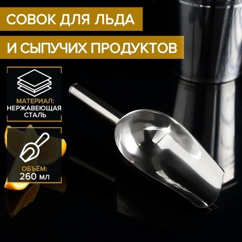 Совок из нержавеющей стали для льда и сыпучих продуктов, 260 мл, 24x9 см