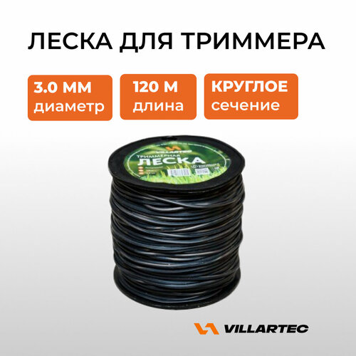 Леска для триммера VILLARTEC, круглого сечения, полиамид, диаметр 3мм, длина 120м