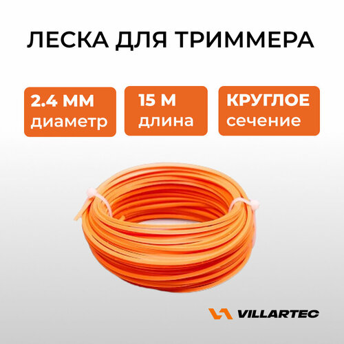 Леска VILLARTEC, для триммера, круглое сечение, 2,4 мм х 15м