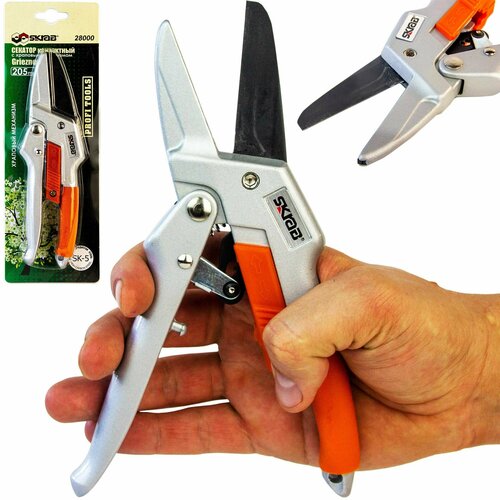оранжевый, серебристыйЦельнокованый садовый секатор - сучкорез контактный 200 мм полностью выполнен из высокоуглеродистой японской стали SK5. Стальные рукоятки имеют противоскользящее обрезиненное покрытие. Секатор - сучкорез профессиональный незаменим на загородном участке при подрезке жестких, сухих кустарников и живых веток. Обеспечивает ровный и чистый рез живых веток диаметром до 25 мм. Рекомендуется толстые ветки резать под углом 45°. Пружинный механизм скрытого монтажа, позволяющий исключить его выпадение и потерю. Исключает выход секатора из строя. Лезвие выполнено из Японской стали SK5 обладающей идеальными режущими свойствами и сохраняет долгую заточку при работе. Вследствие небольших габаритных размеров, веса и эргономичного дизайна секаторов SKRAB снижается нагрузка на мышцы, увеличивается производительность труда. Секатор Скраб оснащен механизмом блокировки лезвий, благодаря которому Вы можете быть уверенны в безопасности при перевозке и хранении инструмента. Запирающий механизм защелкивается одной рукой. Разблокировк