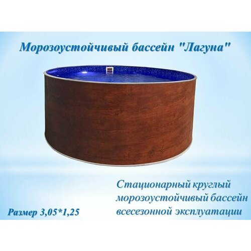 Морозоустойчивый Бассейн Лагуна 300х125 см под дерево, пленка мрамор 0,4мм+скиммер