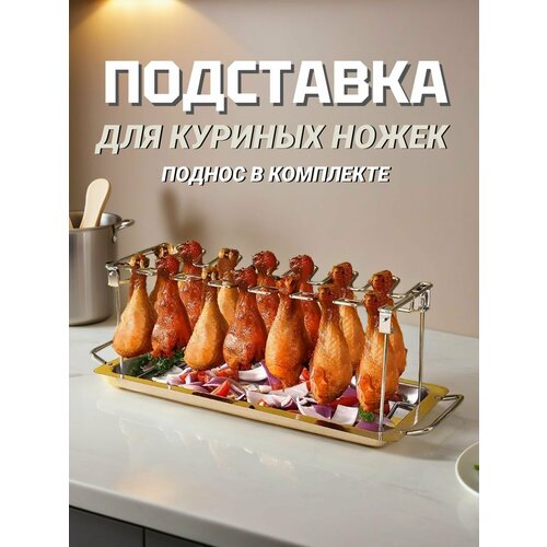 Подставка для куриных ножек и крылышек с подносом для гриля, барбекю, духовки, нержавеющая сталь, поднос в комплекте