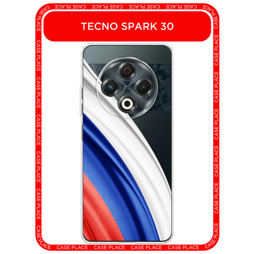 Чехол на Tecno Spark 30 / Текно Спарк 30 с принтом Флаг России уголок, прозрачный