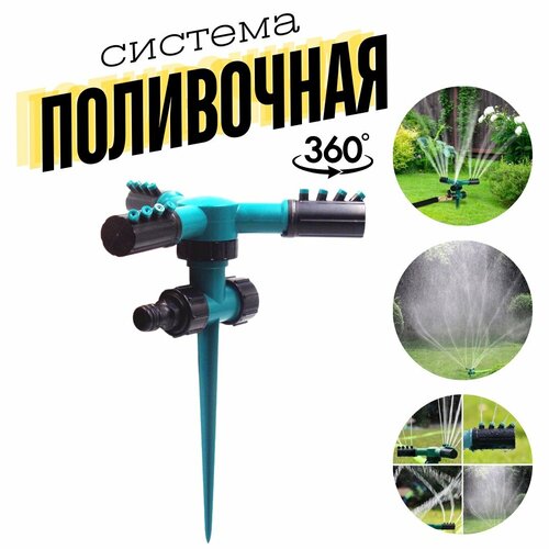 Разбрызгиватель для полива / Вращающийся спринклер садовый / Дождеватель (распылитель) для газона / Автоматический 3-рожковый ороситель