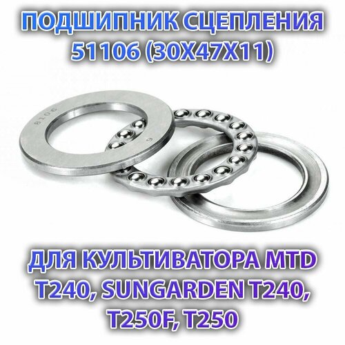 Подшипник сцепления 51106 (30X47X11 мм) для культиватора MTD T240, Sungarden T240, T250F, T250