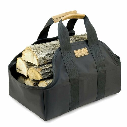 Сумка для переноски дров усиленная нейлон с отделкой кожей 45х30см черная