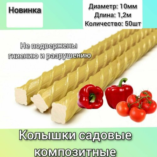 Колышки композитные стеклопластиковые (10мм) 1,2м / опора для садовых растений - 50 шт.