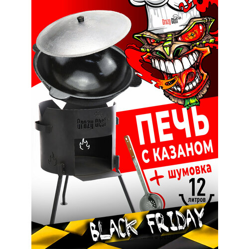 Казан чугунный с плоским дном, 12 л, с крышкой + печь со съемными ножками