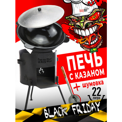 Казан чугунный с круглым дном, 22 л, с крышкой + печь со съемными ножками