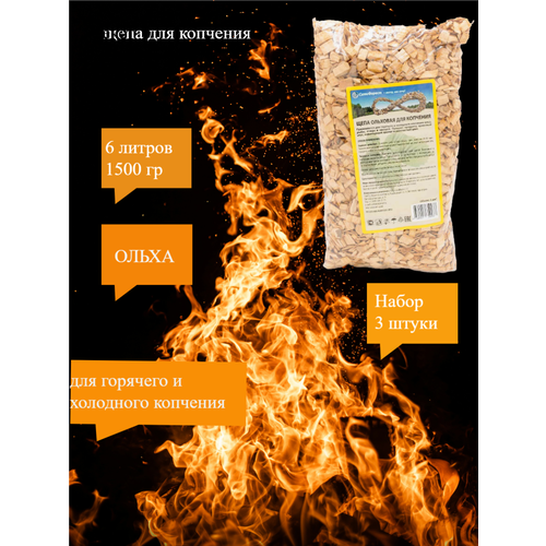 Щепа для копчения "Ольха", для горячего и холодного копчения, пакет, 3 упаковки по 2 литра, вес 1500 гр