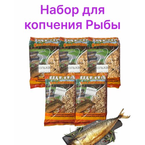 Набор щепы для копчения ONNEKAS, для рыбы, абрикос/ольха, 5 пакетов, 2,5 кг