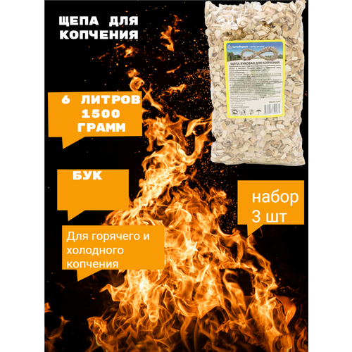 Щепа для копчения Бук, для горячего и холодного копчения, 3 пакета по 2 л, 1500 г