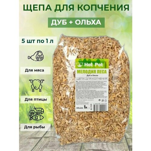 Hot Pot Щепа для копчения Мелодия леса, дуб и ольха, 1 л 1 л 1 кг