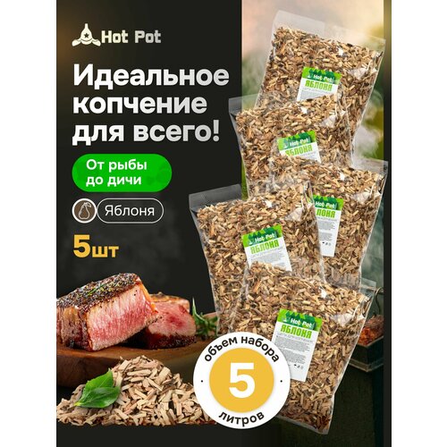 Щепа для копчения "Яблоня", набор 5 шт х 1 л / HOT POT / Для холодного копчения, средняя фракция