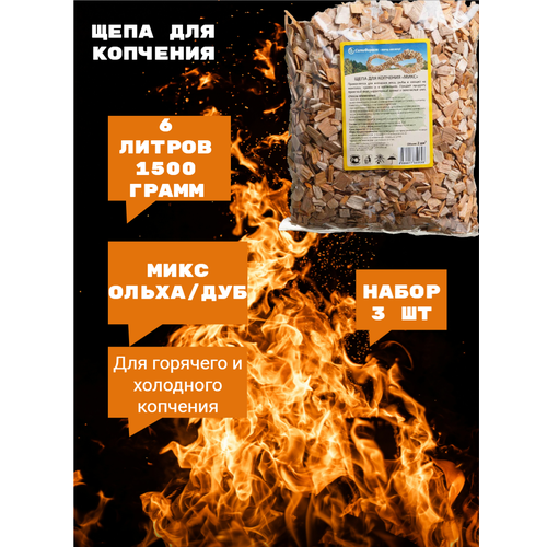 Щепа для копчения Микс Ольха/Бук, для горячего и холодного копчения, 3 пакета по 2 л, 1500 г