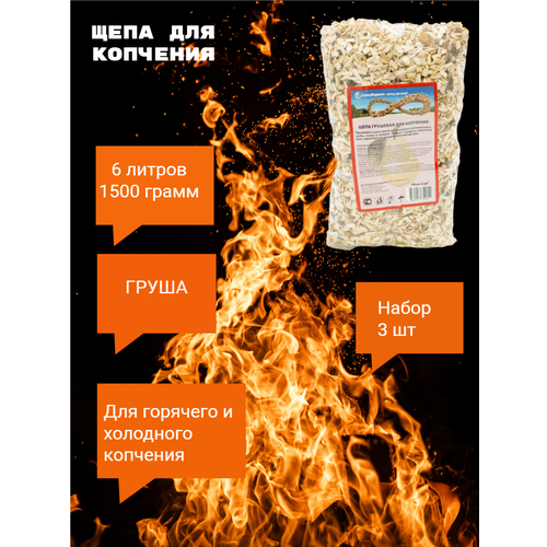 Щепа для копчения Груша, для горячего и холодного копчения, 3 пакета по 2 л, 1500 г