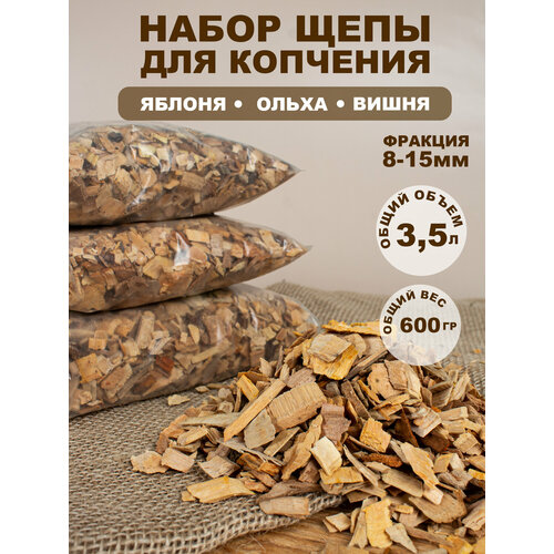 Цены на Щепа для копчения Микс Ольха/Бук, для горячего и холодного копчения, 3 пакета по 2 л, 1500 г в г. Москва