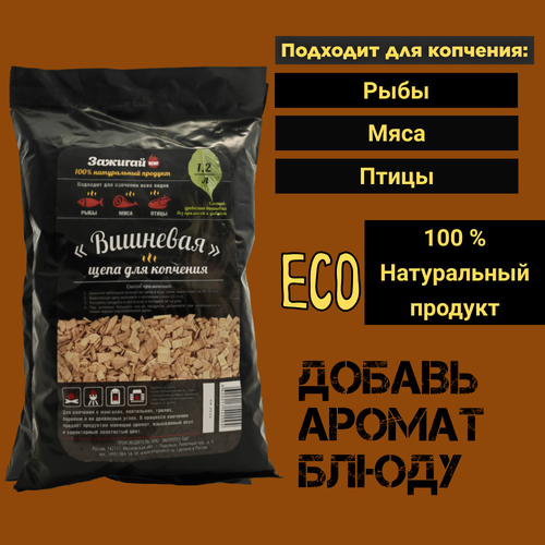 Щепа для копчения Зажигай, вишневая/вишня для копчения рыбы, мяса, птицы, сыра пакет, 1.2 л