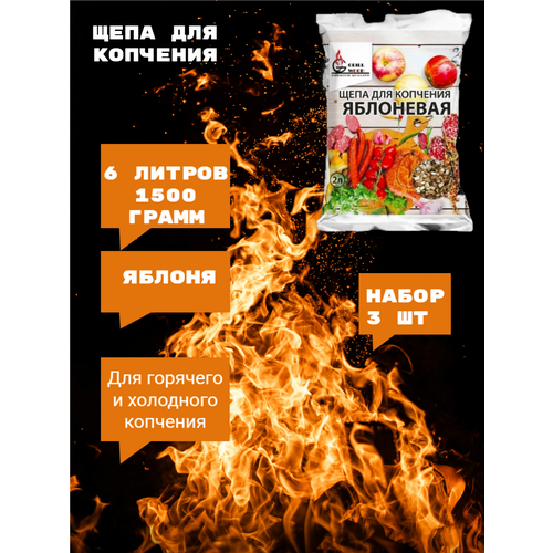Щепа для копчения Яблоня, для горячего и холодного копчения, 3 пакета по 2 л, 1500 г