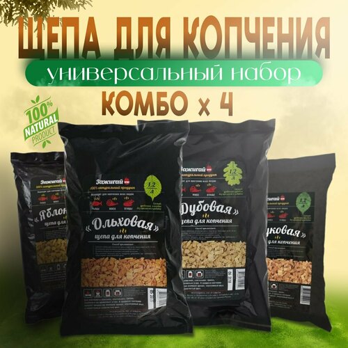 Набор Щепы для копчения Ольховая Дубовая Яблоневая Буковая 4 штуки по 1200 мл