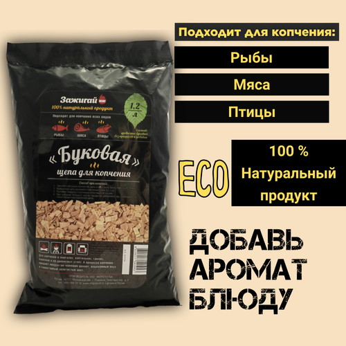 Щепа для копчения Зажигай, буковая/бук для копчения мяса, рыбы, птицы, пакет, 1.2 л