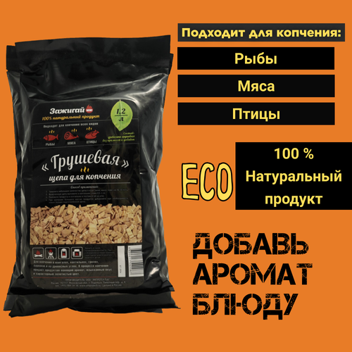 Щепа для копчения Зажигай, грушевая/груша для копчения мяса, сыра, птицы, пакет, 1.2 л