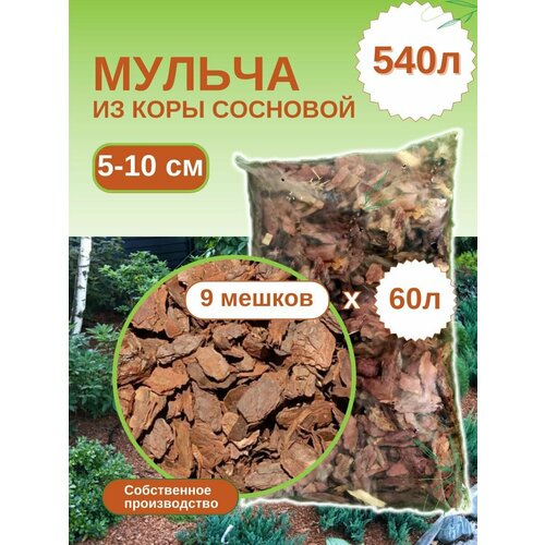 Мульча из коры сосновой крупная (5-10 см) ЭкоТорг, 60 л. Комплект 9шт