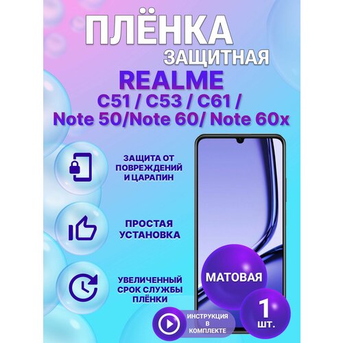 Матовая гидрогелевая полиуретановая пленка на Realme C51, C53, C61, Note 50, Note 60, Note 60x/Реалми С51 С53 С61 Нот50 Нот60 Нот60х