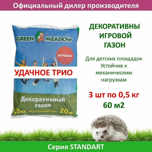 Семена газона игровой (GREEN MEADOW) , 0,5 кг х 3 шт (1,5 кг)