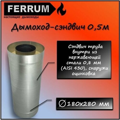 Дымоход-сэндвич 0,5м (430 0,8мм + оцинковка) Ф180х280 Ferrum