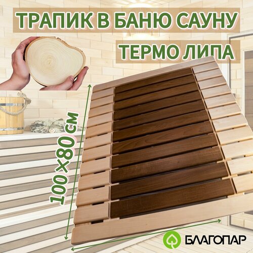 Трапик Решётка на пол для бани и сауны, ванной 100х80см центр термо Липа благопар