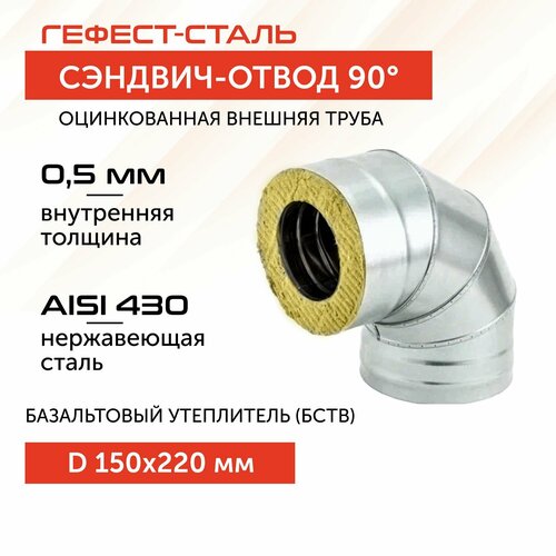 Отвод-термо 90*, 150х220, AISI 430/Оц, 0,5мм/0,5мм, (К)
