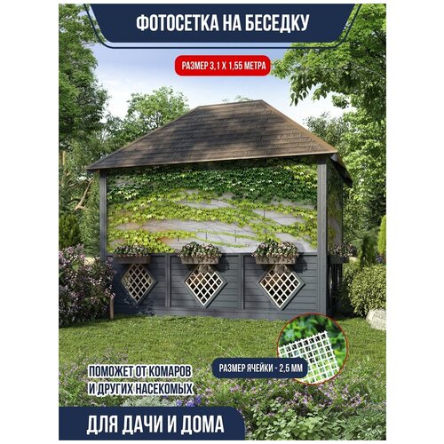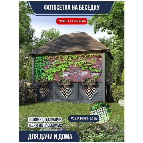 зеленый, коричневыйФотосетка небольшого размера для декора любой поверхности забора, окна, беседки, веранды, грядки. Также можно использовать для защиты от насекомых – мух, комаров и прочей нечисти. Сетку можно крепить на саморезы, скобы, хамутами и т. п. Крепеж в комплект не входит.