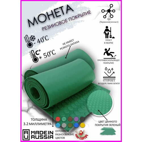 Рулонное покрытие Зеленая Монета размер 1,5х5