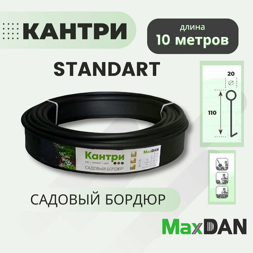 Бордюр садовый Кантри MaxDan Standart черный 11x1000см d20, Канта лента бордюрная для дачи, ограждение для грядок и ландшафтного дизайна
