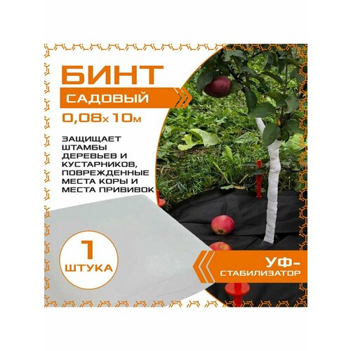 Бинт садовый 0.08 х 10м (1шт.), с УФ-стабилизатором, для защиты деревьев и кустарников, спанбонд