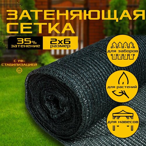 Сетка затеняющая для растений 2м х 6м - 35 гр/м2 - фасадная, для огорода, беседок, навесов, забора