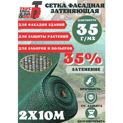 Сетка затеняющая фасадная 2,0х10м, плотность 35г,/м2 TAKE&DO