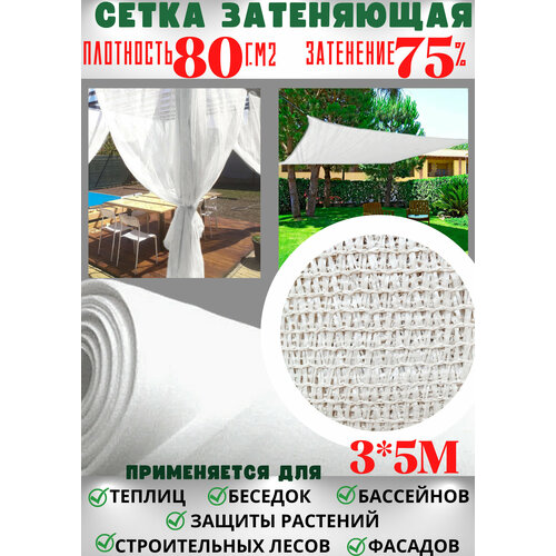 Сетка затеняющая фасадная Сверхплотная 3,0х5м Белая, плотность 80г/м2 TAKE&DO